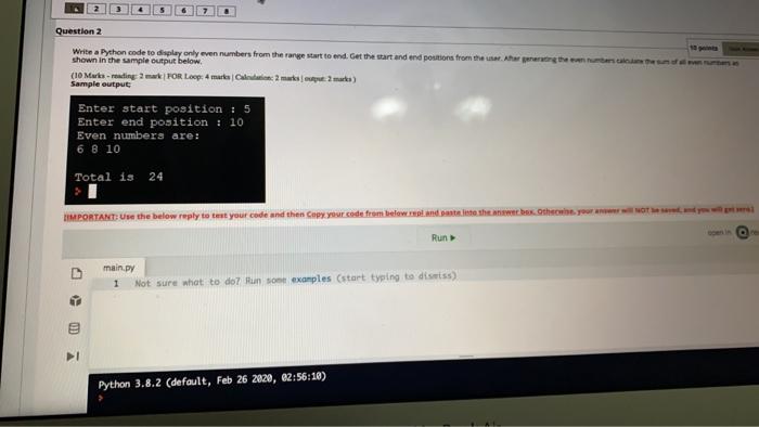 Solved Question 2 Write A Python Code To Display Only Even Chegg Com